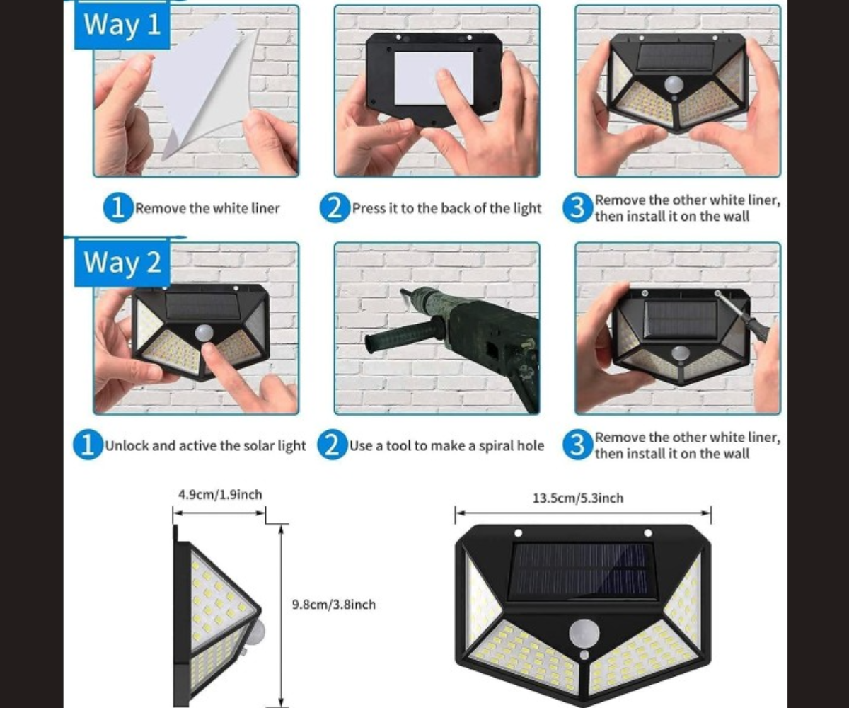 • Ultimate Brightness: 100 LEDs on 4 sides provide wide-area illumination, brighter than standard solar lights.
